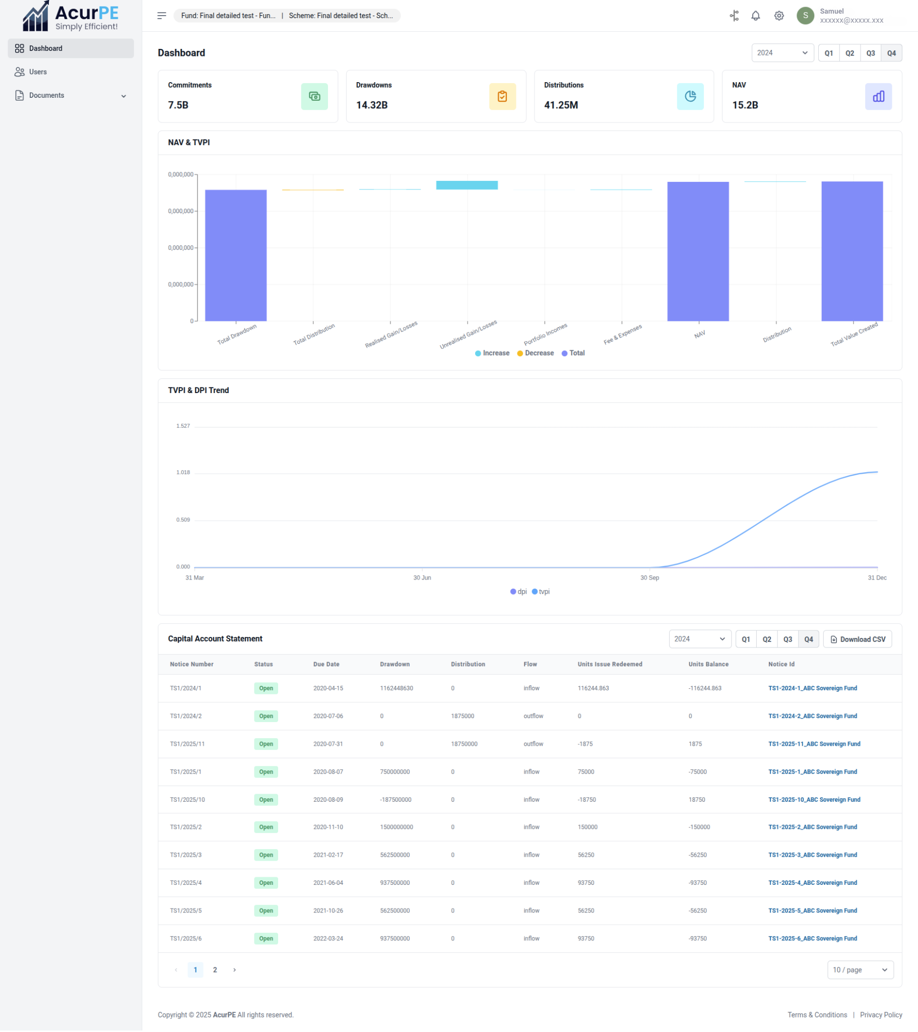Experience an industry-first feature that links capital account statements directly to respective notices, offering detailed transparency.